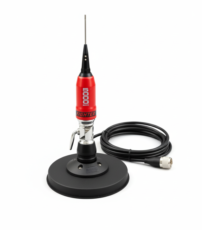 - Cable: 5 m RG 58/ PL 259 R male (16 ft)