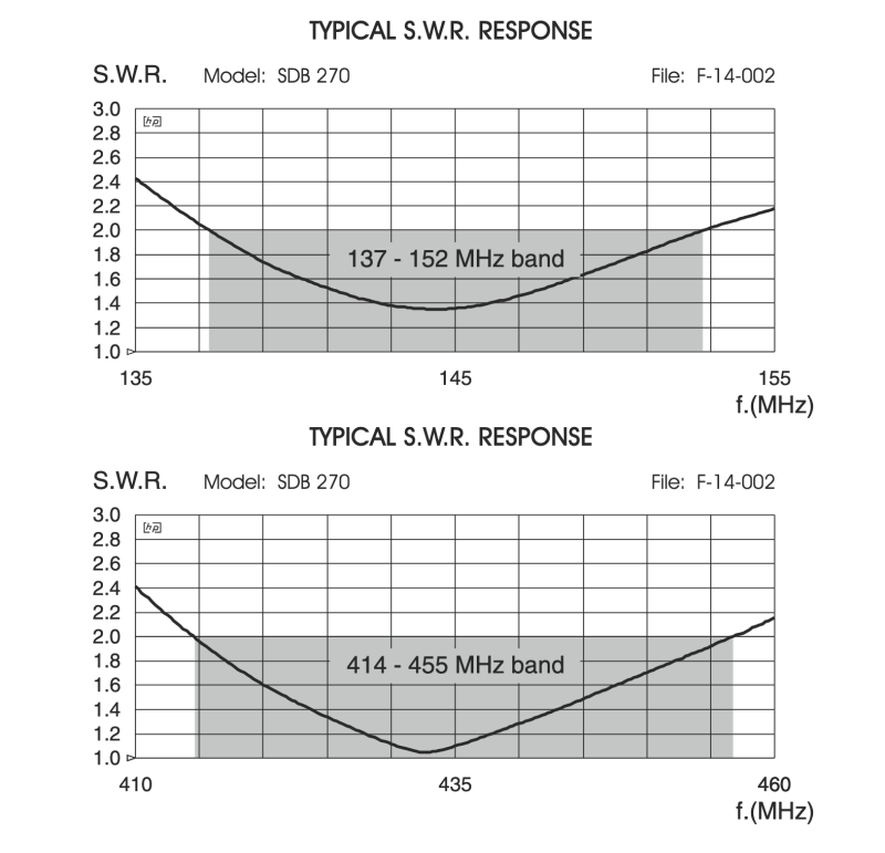 137-152 MHz, 415-455 MHz No tuning required |