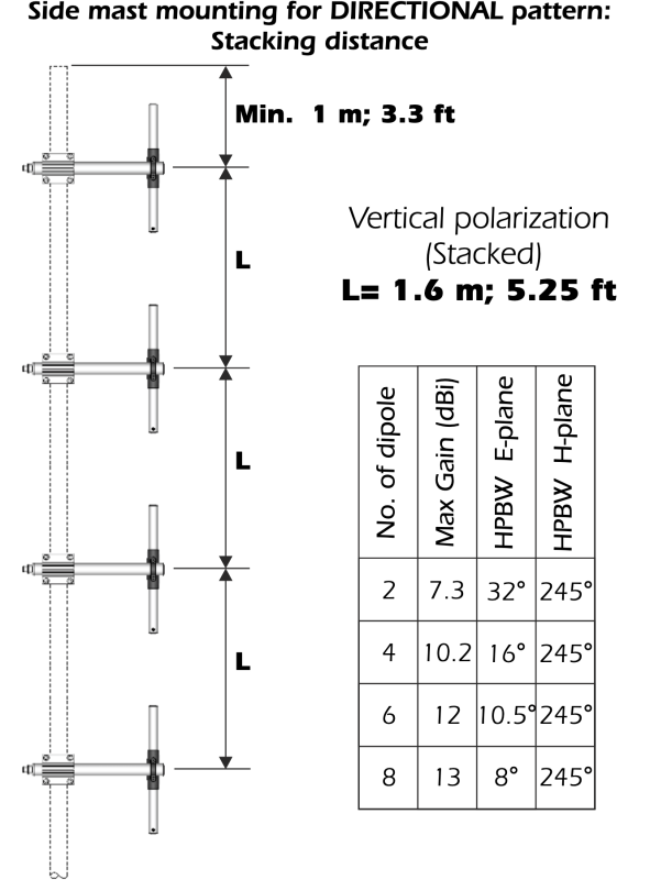 To increase the antenna gain please install it in stacked or bayed array.