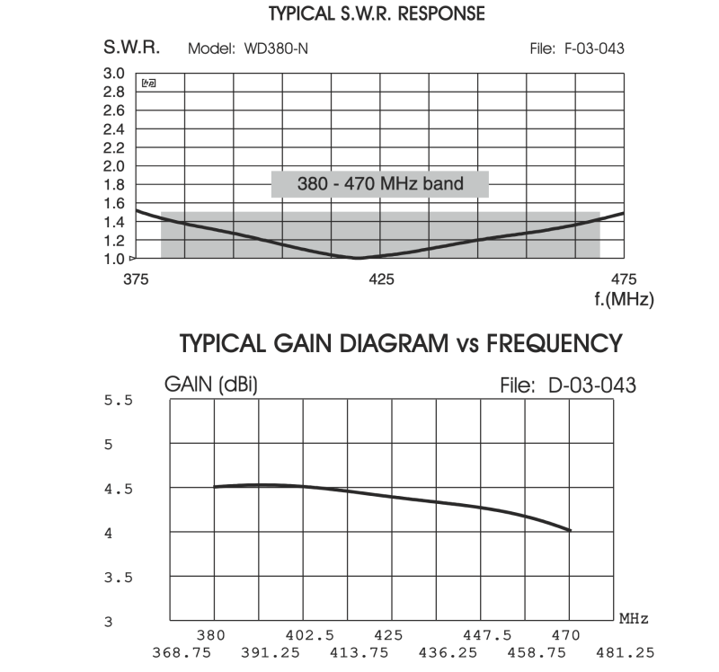 380-470 MHz @ SWR ≤1.5 No tuning required |